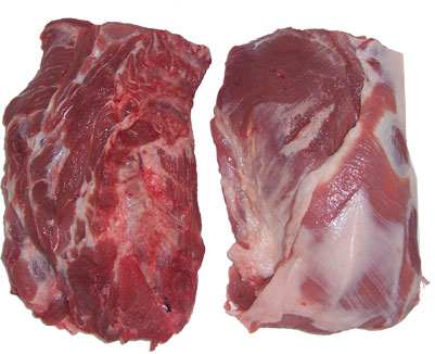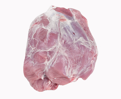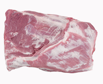 Picnic boneless and rindless, with shank, false lean and part jowl, 2mm fat cover.